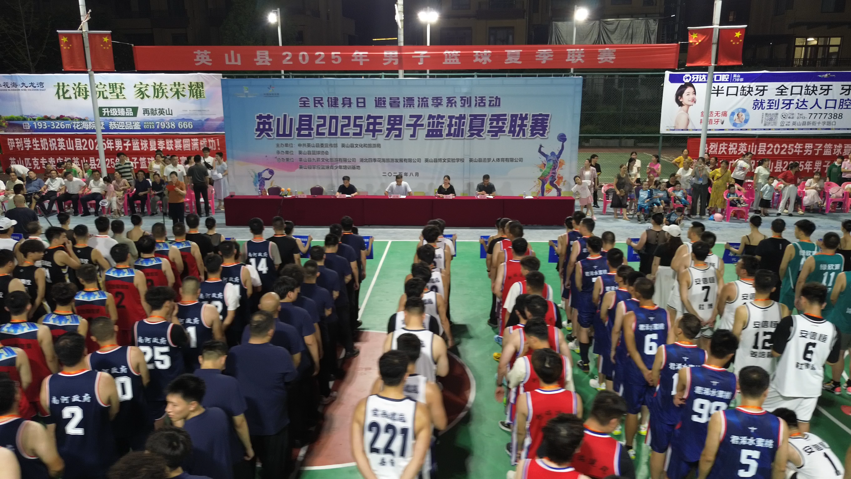 8月8日晚,“全民健身日 避暑漂流系列活动”英山县2025年男子篮球夏季联赛在四季花海景区灯光球场开赛。县委常委、宣传部部长童壁,副县长黄伟参加开幕式。